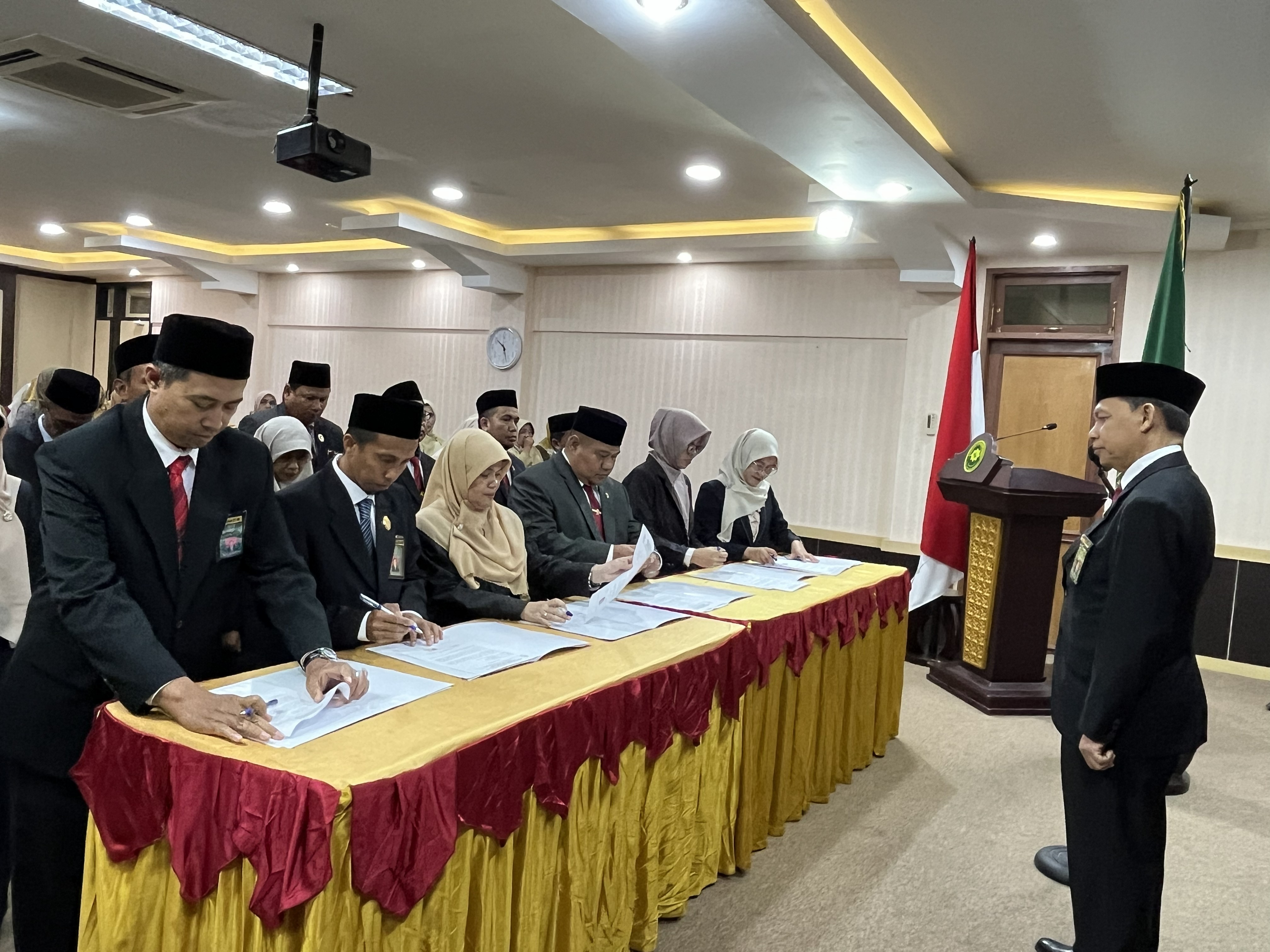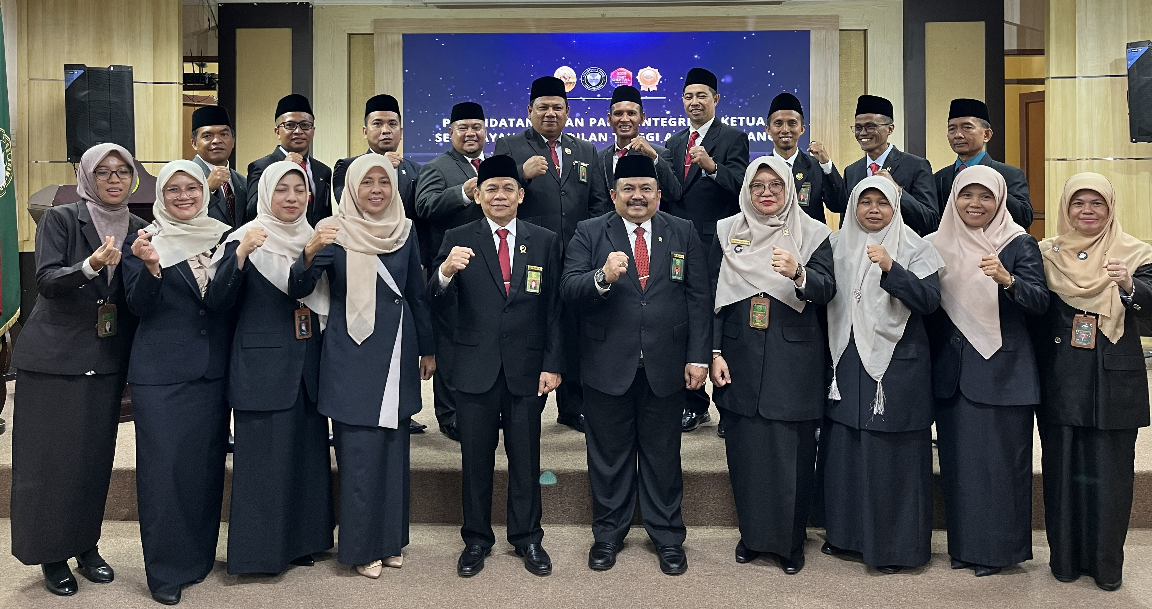 Para Ketua Pengadilan Agama se-sumbar melaksanakan pengucapan dan penandatanganan Pakta Integritas di hadapan Ketua Pengadilan Tinggi Agama Padang, bertempat di ruangan command center PTA Padang.